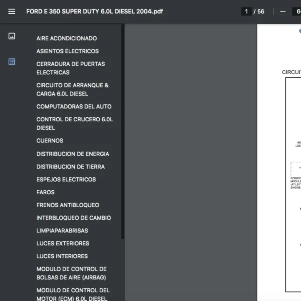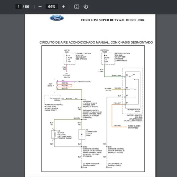 Si estas buscando un manual eléctrico de la marca Ford modelo E 350 de 6.0L DIESEL año 2004, este es el diagrama automotriz que necesitas.