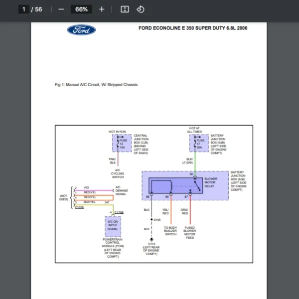 Si estas buscando un manual eléctrico de la marca Ford modelo E 350 de 6.8L año 2006, este es el diagrama automotriz que necesitas.