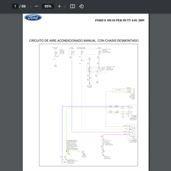 Si estas buscando un manual eléctrico de la marca Ford modelo E 450 de 6.0L año 2009, este es el diagrama automotriz que necesitas.