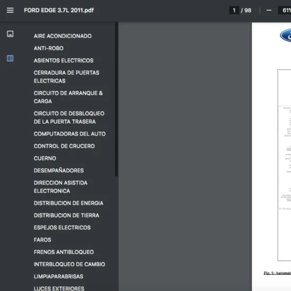 Si estas buscando un manual eléctrico de la marca Ford modelo Edge de 3.7L año 2011, este es el diagrama automotriz que necesitas.