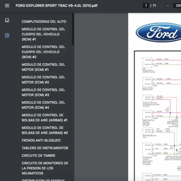 Si estas buscando un manual eléctrico de la marca Ford modelo Explorer de 4.0L año 2010, este es el diagrama automotriz que necesitas.