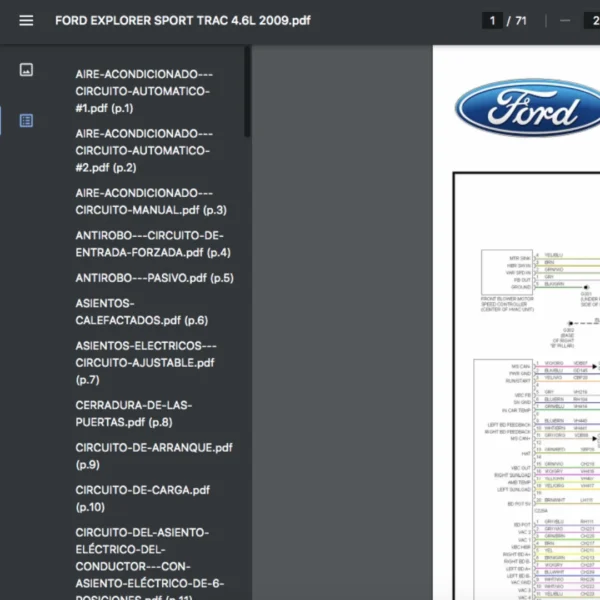Si estas buscando un manual eléctrico de la marca Ford modelo Explorer Sport Trac de 4.6L año 2009, este es el diagrama automotriz que necesitas.