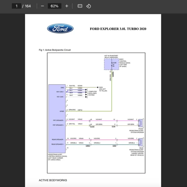 Si estas buscando un manual eléctrico de la marca Ford modelo Explorer de 3.0L TURBO año 2020, este es el diagrama automotriz que necesitas.