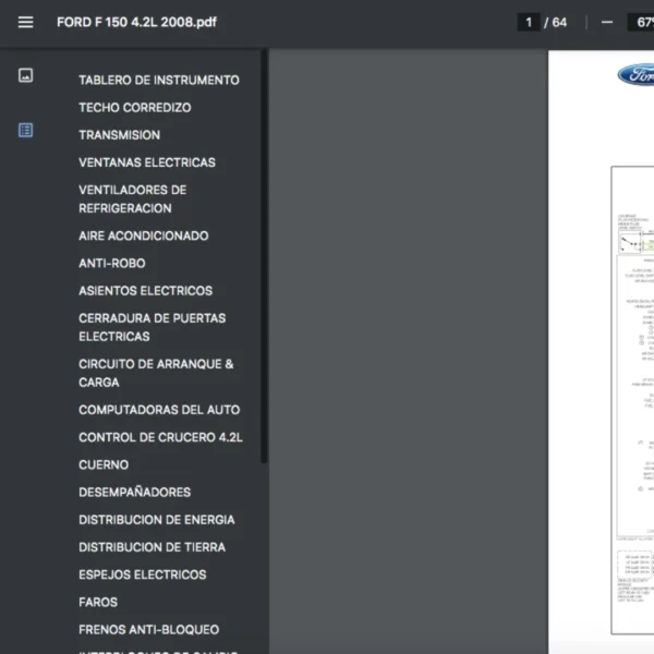Si estas buscando un manual eléctrico de la marca Ford modelo F 150 de 4.2L año 2008, este es el diagrama automotriz que necesitas.