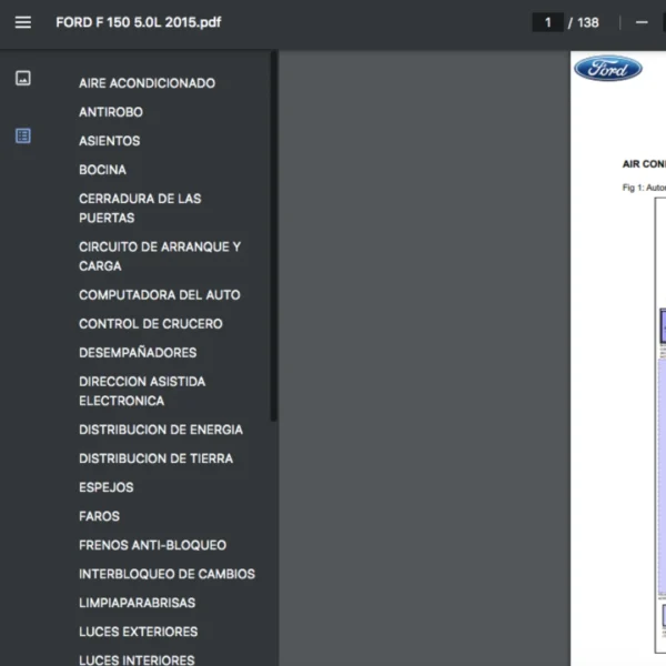 Si estas buscando un manual eléctrico de la marca Ford modelo F 150 de 5.0L año 2015, este es el diagrama automotriz que necesitas.