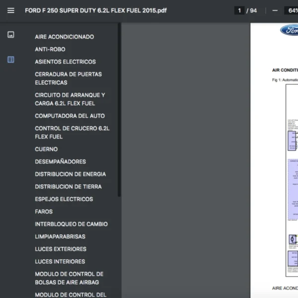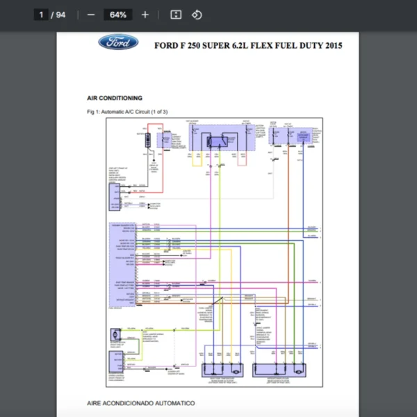 Si estas buscando un manual eléctrico de la marca Ford modelo F 250 de 6.2L año 2015, este es el diagrama automotriz que necesitas.