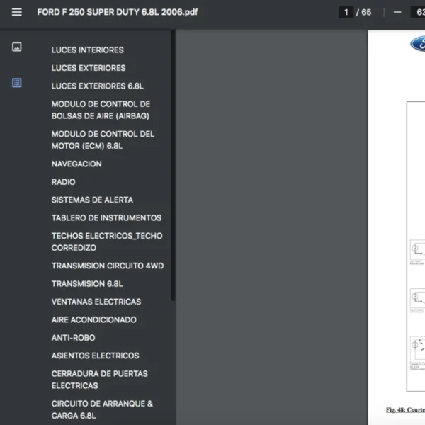 Si estas buscando un manual eléctrico de la marca Ford modelo F 250 de 6.8L año 2006, este es el diagrama automotriz que necesitas.