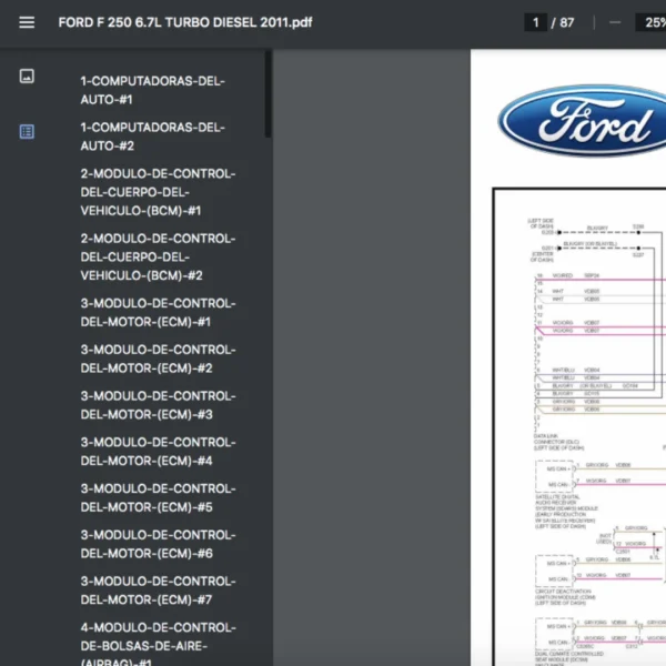 El Diagrama Eléctrico Automotriz FORD F250 6.7L TURBO DIESEL 2011 te incluye la gráfica de los siguientes componentes: