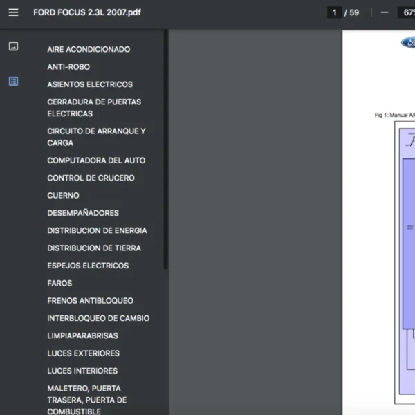 Si estas buscando un manual eléctrico de la marca Ford modelo Focus de 2.3L año 2007, este es el diagrama automotriz que necesitas.