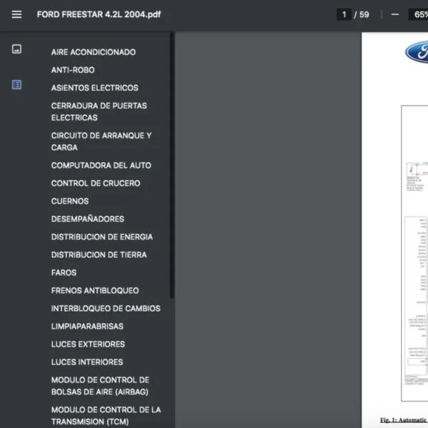 Si estas buscando un manual eléctrico de la marca Ford modelo Freestar de 4.2L año 2004, este es el diagrama automotriz que necesitas.