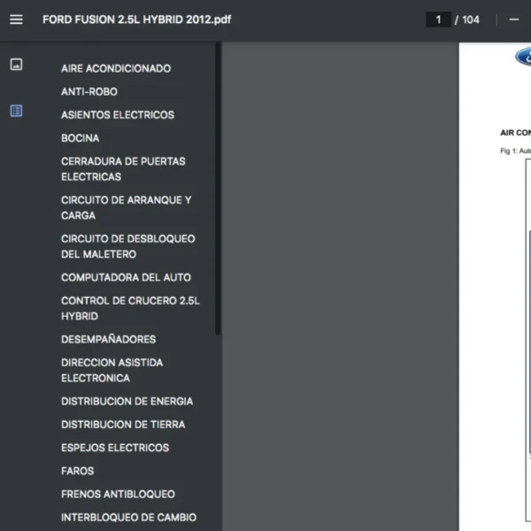 Si estas buscando un manual eléctrico de la marca Ford modelo Fusion de 2.5L año 2012, este es el diagrama automotriz que necesitas.