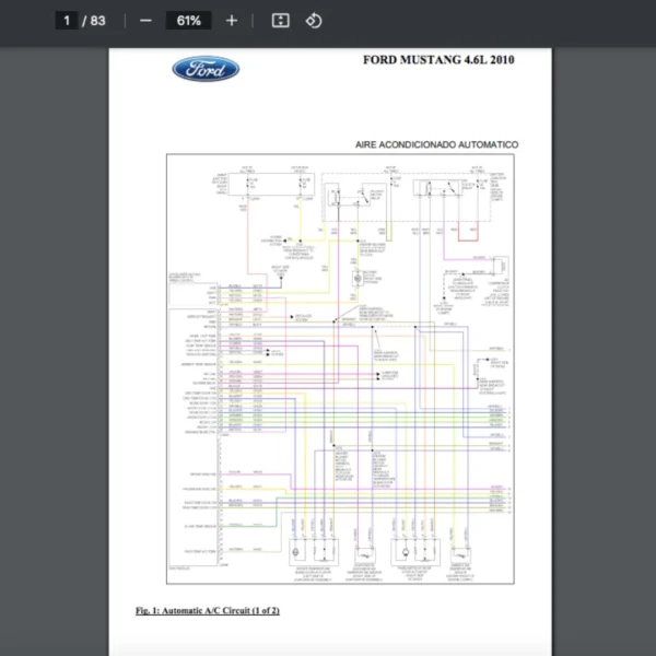 Si estas buscando un manual eléctrico de la marca Ford modelo Mustang de 4.6L año 2010, este es el diagrama automotriz que necesitas.