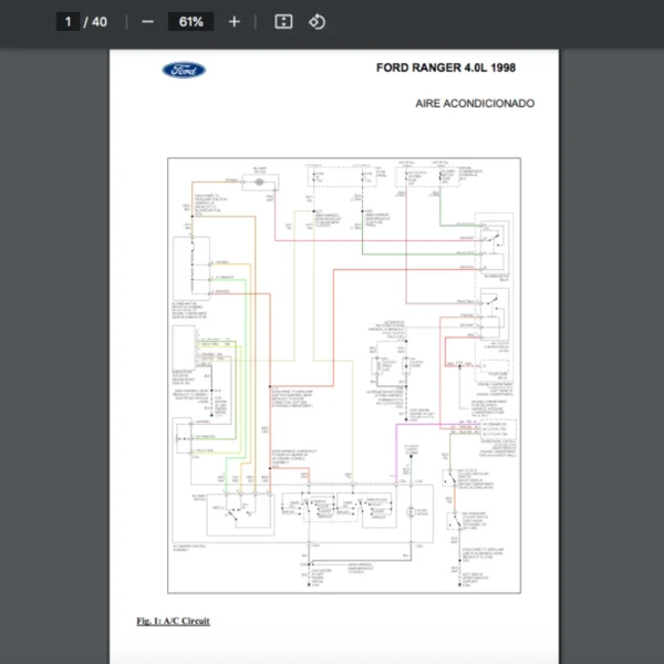 Si estas buscando un manual eléctrico de la marca Ford modelo Ranger de 4.0L año 1998, este es el diagrama automotriz que necesitas.