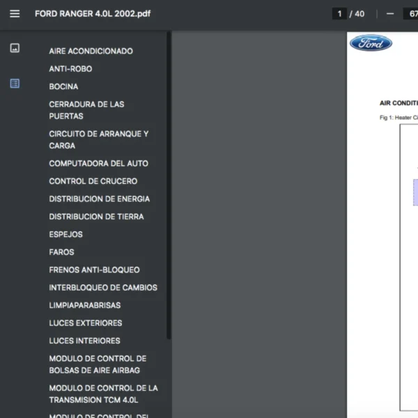 Si estas buscando un manual eléctrico de la marca Ford modelo Ranger de 4.0L año 2002, este es el diagrama automotriz que necesitas.