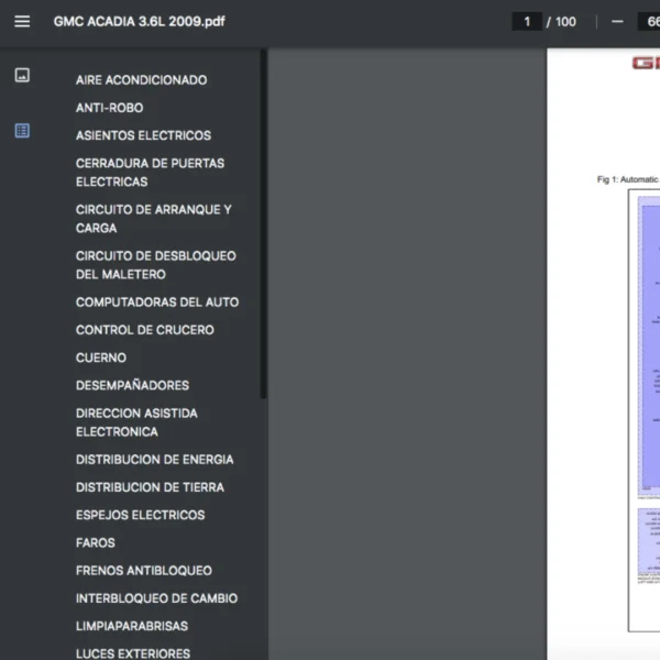 Si estas buscando un manual eléctrico de la marca GMC modelo Acadia de 3.6L año 2009, este es el diagrama automotriz que necesitas.