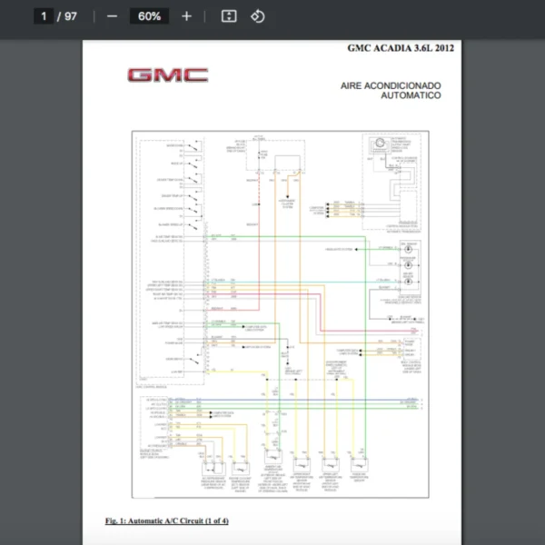 Si estas buscando un manual eléctrico de la marca GMC modelo Acadia de 3.6L año 2012, este es el diagrama automotriz que necesitas.