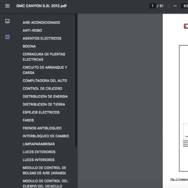 Si estas buscando un manual eléctrico de la marca GMC modelo Canyon de 5.3L año 2012, este es el diagrama automotriz que necesitas.