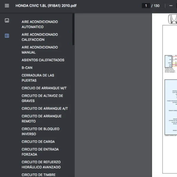 Si estas buscando un manual eléctrico de la marca Honda modelo Civic de 1.8L año 2010, este es el diagrama automotriz que necesitas.