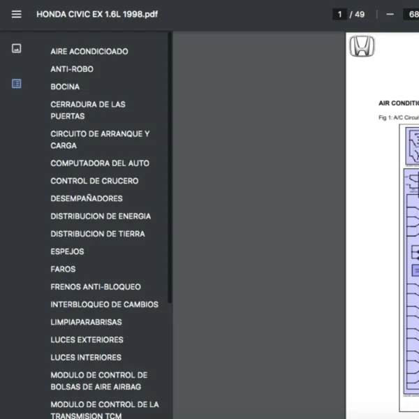 Si estas buscando un manual eléctrico de la marca Honda modelo Civic de 1.6L año 1998, este es el diagrama automotriz que necesitas.