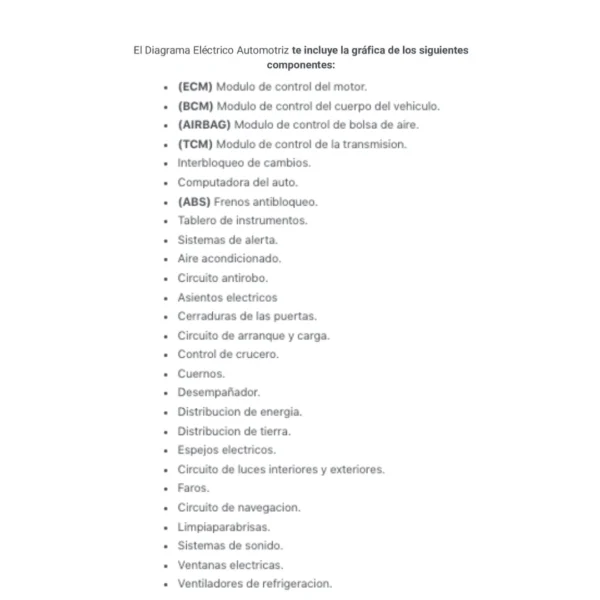 El Diagrama Eléctrico Automotriz te incluye la gráfica de los siguientes componentes: