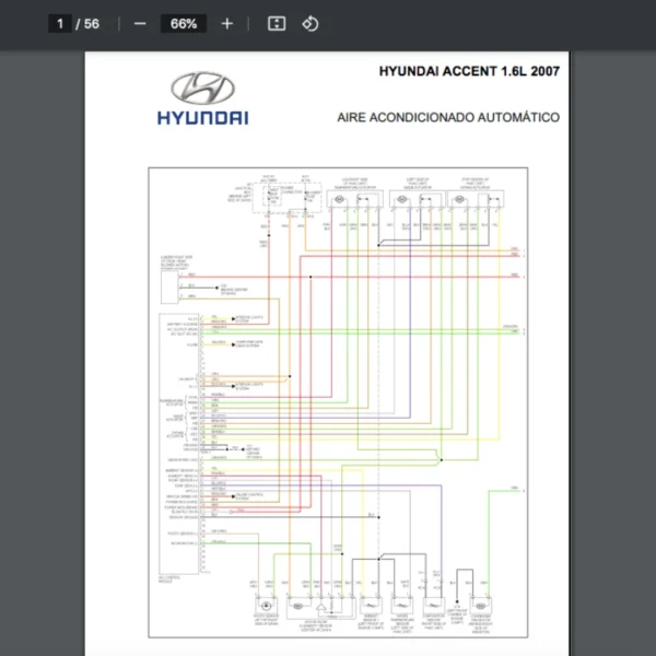 Si estas buscando un manual eléctrico de la marca Hyundai modelo Accent de 1.6L año 2007, este es el diagrama automotriz que necesitas.