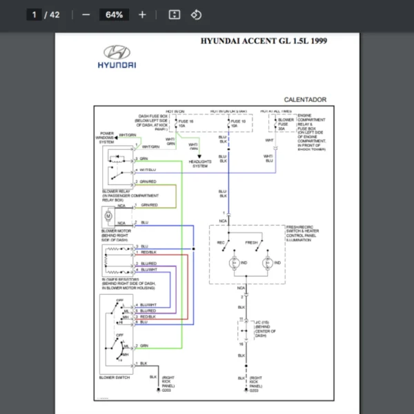 Si estas buscando un manual eléctrico de la marca Hyundai modelo Accent de 1.5L año 1999, este es el diagrama automotriz que necesitas.