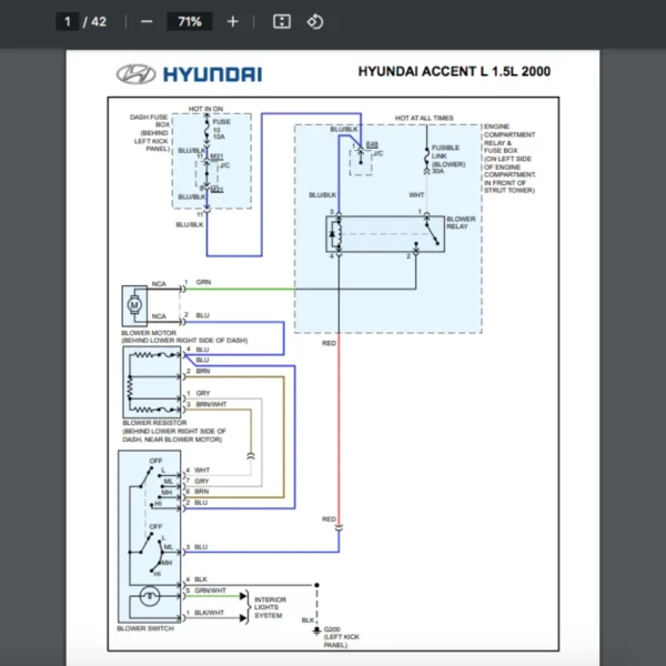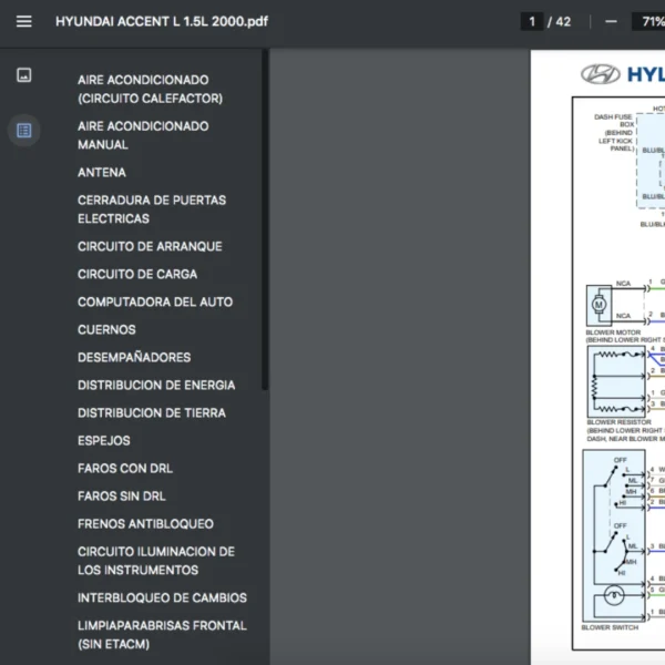 Si estas buscando un manual eléctrico de la marca Hyundai modelo Accent de 1.5L año 2000, este es el diagrama automotriz que necesitas.