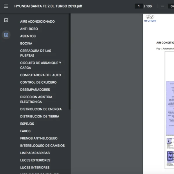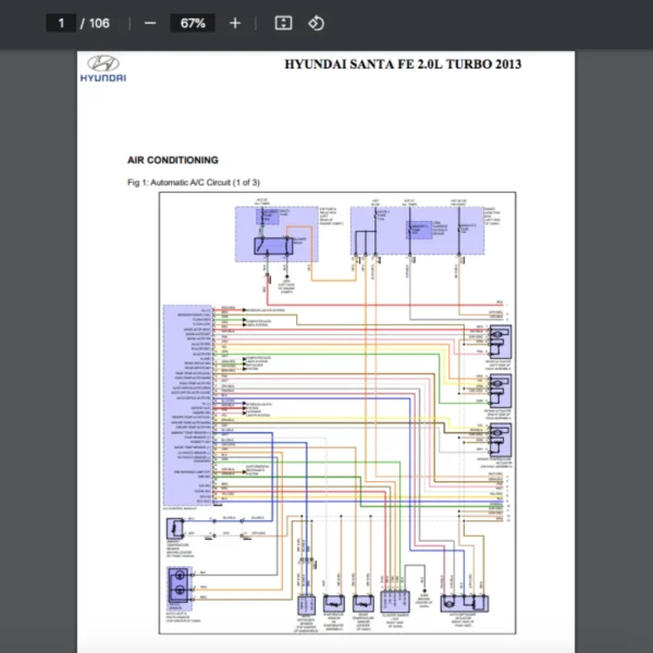 Si estas buscando un manual eléctrico de la marca Hyundai modelo Santa Fe de 2.0L TURBO año 2013, este es el diagrama automotriz que necesitas.