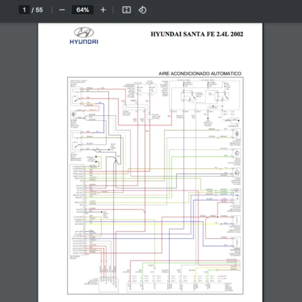 Si estas buscando un manual eléctrico de la marca Hyundai modelo Santa Fe de 2.4L año 2002, este es el diagrama automotriz que necesitas.