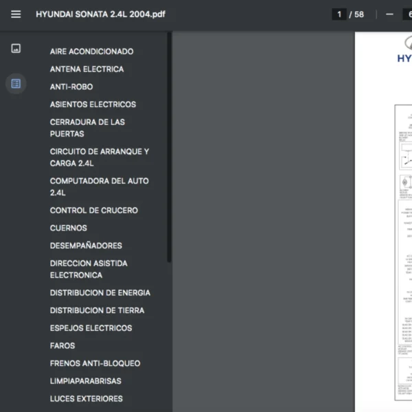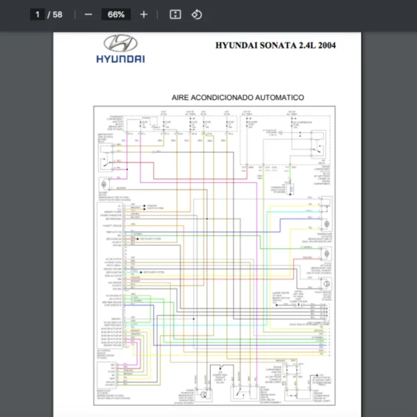 Si estas buscando un manual eléctrico de la marca Hyundai modelo Sonata de 2.4L año 2004, este es el diagrama automotriz que necesitas.