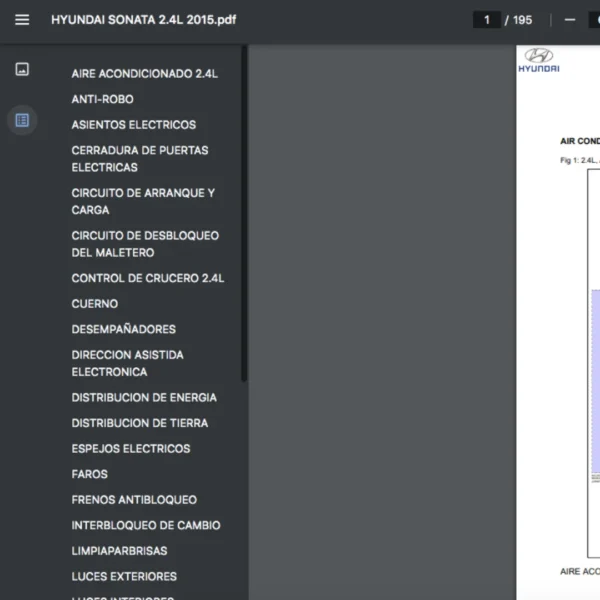 Si estas buscando un manual eléctrico de la marca Hyundai modelo Sonata de 2.4L año 2015, este es el diagrama automotriz que necesitas.