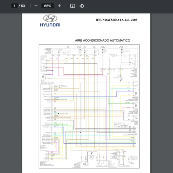 Si estas buscando un manual eléctrico de la marca Hyundai modelo Sonata de 2.7L año 2003, este es el diagrama automotriz que necesitas.