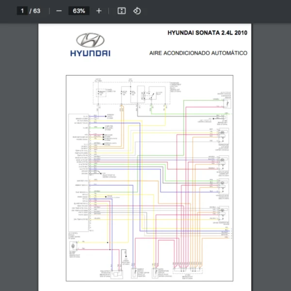 Si estas buscando un manual eléctrico de la marca Hyundai modelo Sonata de 2.4L año 2010, este es el diagrama automotriz que necesitas.