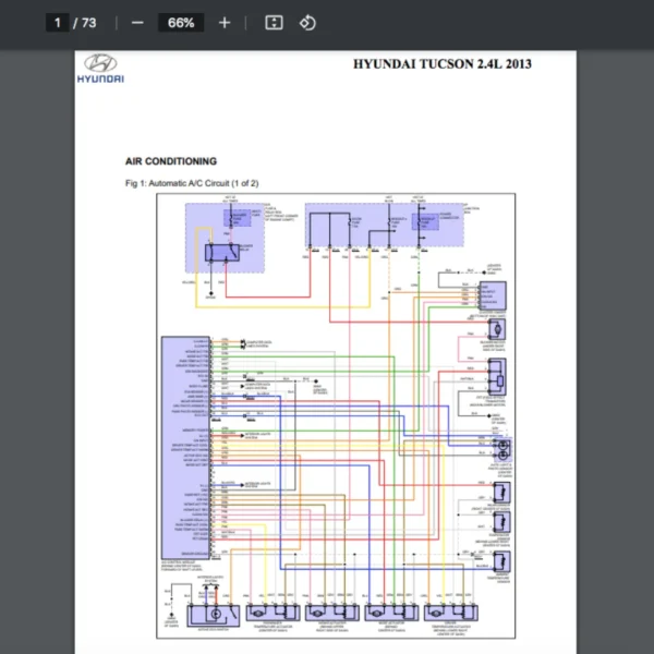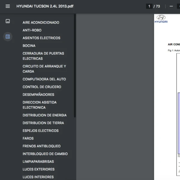 Si estas buscando un manual eléctrico de la marca Hyundai modelo Tucson de 2.4L año 2013, este es el diagrama automotriz que necesitas.