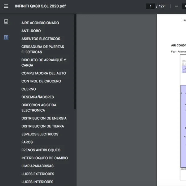 Si estas buscando un manual eléctrico de la marca Infiniti modelo QX80 de 5.6L año 2020, este es el diagrama automotriz que necesitas.