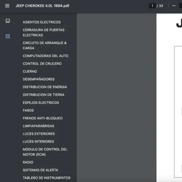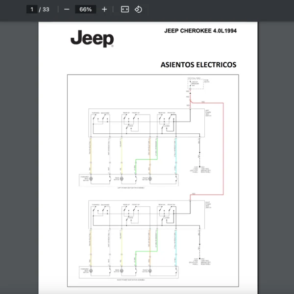 Conexiones. Sensores. Y otros componentes que intervienen en el funcionamiento correcto de los circuitos electrónicos (también llamados en inglés “wiring diagram”). Si estas buscando un manual eléctrico de la marca Jeep modelo Cherokee de 4.0L año 1994 , este es el diagrama automotriz que necesitas.