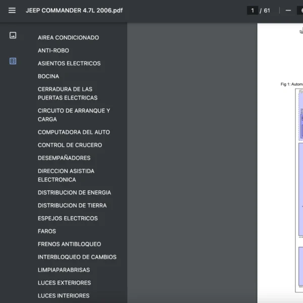 Si estas buscando un manual eléctrico de la marca Jeep modelo Commander de 4.7L año 2006, este es el diagrama automotriz que necesitas.