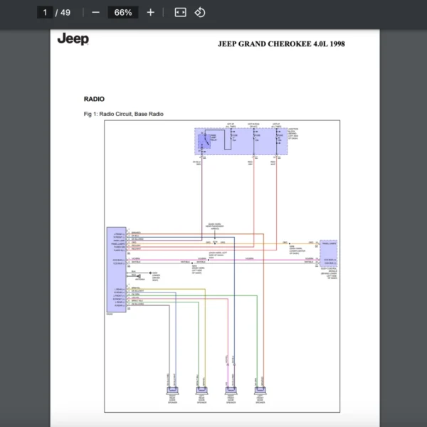 Si estas buscando un manual eléctrico de la marca Jeep modelo Grand Cherokee de 4.0L año 1998, este es el diagrama automotriz que necesitas.