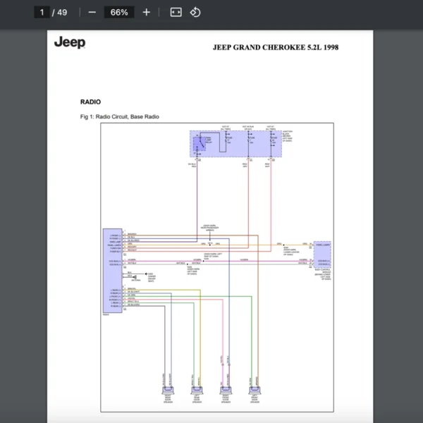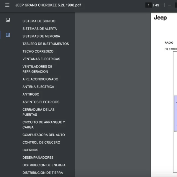 Si estas buscando un manual eléctrico de la marca Jeep modelo Grand Cherokee de 5.2L año 1998, este es el diagrama automotriz que necesitas.