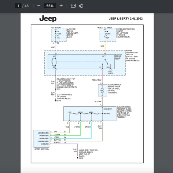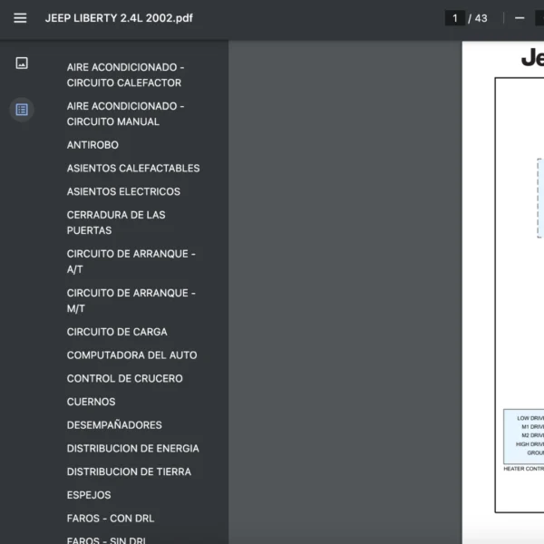 Si estas buscando un manual eléctrico de la marca Jeep modelo Liberty de 2.4L año 2002, este es el diagrama automotriz que necesitas.