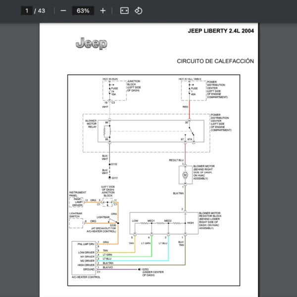 Si estas buscando un manual eléctrico de la marca Jeep modelo Liberty de 2.4L año 2004, este es el diagrama automotriz que necesitas.