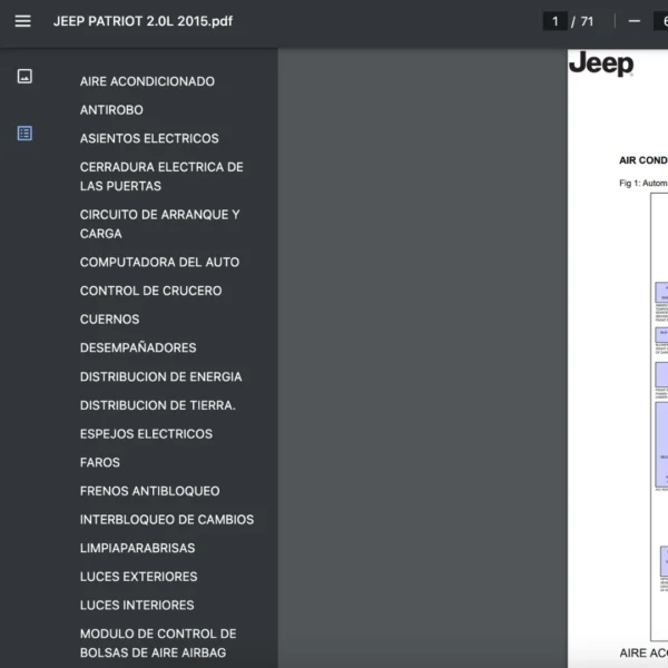 Si estas buscando un manual eléctrico de la marca Jeep modelo Patriot de 2.0L año 2015, este es el diagrama automotriz que necesitas.