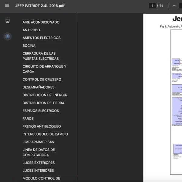 Si estas buscando un manual eléctrico de la marca Jeep modelo Patriot de 2.4L año 2016, este es el diagrama automotriz que necesitas.