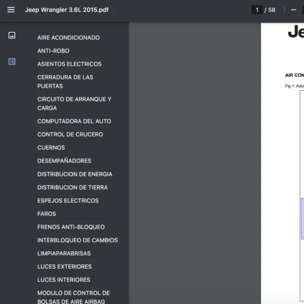 Si estas buscando un manual eléctrico de la marca Jeep modelo Wrangler de 3.6L año 2015, este es el diagrama automotriz que necesitas.