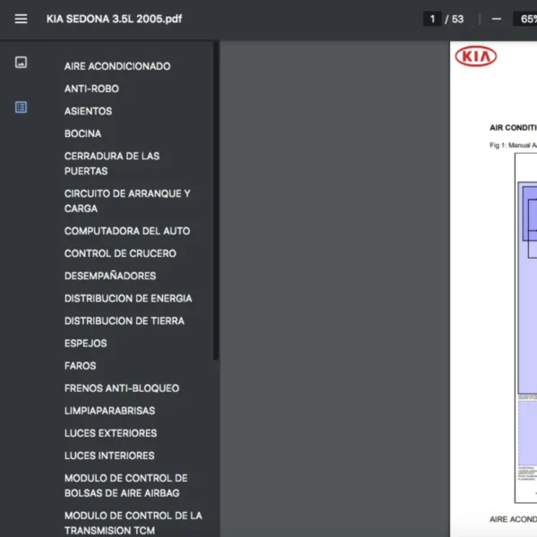 Si estas buscando un manual eléctrico de la marca Kia modelo Sedona de 3.5L año 2005, este es el diagrama automotriz que necesitas.