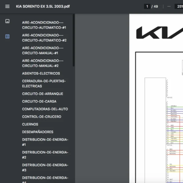 Si estas buscando un manual eléctrico de la marca Kia modelo Sorento de 3.5L año 2003, este es el diagrama automotriz que necesitas.