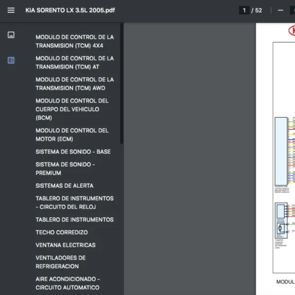 Si estas buscando un manual eléctrico de la marca Kia modelo Sorento de 3.5L año 2005, este es el diagrama automotriz que necesitas.