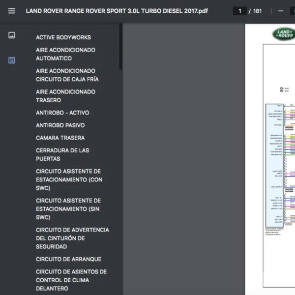 Si estas buscando un manual eléctrico de la marca Land Rover modelo Range Rover de 3.0L año 2017, este es el diagrama automotriz que necesitas.