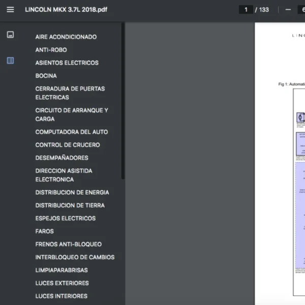 Si estas buscando un manual eléctrico de la marca Lincoln modelo MKX de 3.7L año 2018, este es el diagrama automotriz que necesitas.