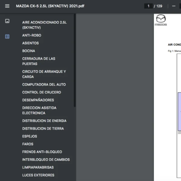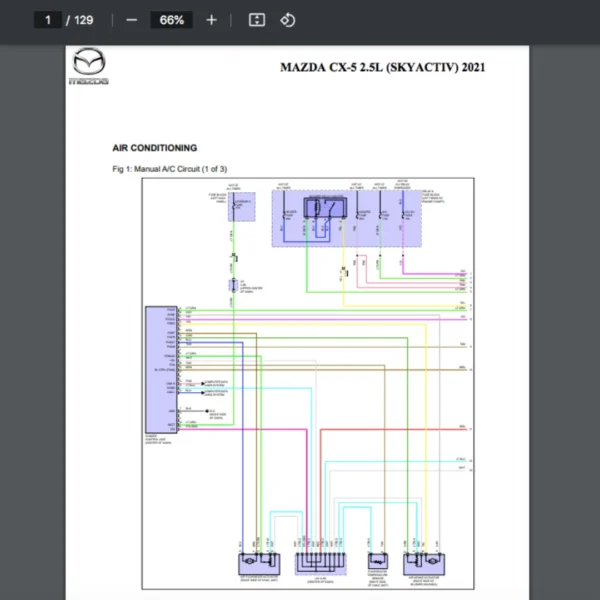 Si estas buscando un manual eléctrico de la marca MAZDA modelo CX-5 de 2.5L (SKYACTIV) año 2021, este es el diagrama automotriz que necesitas.